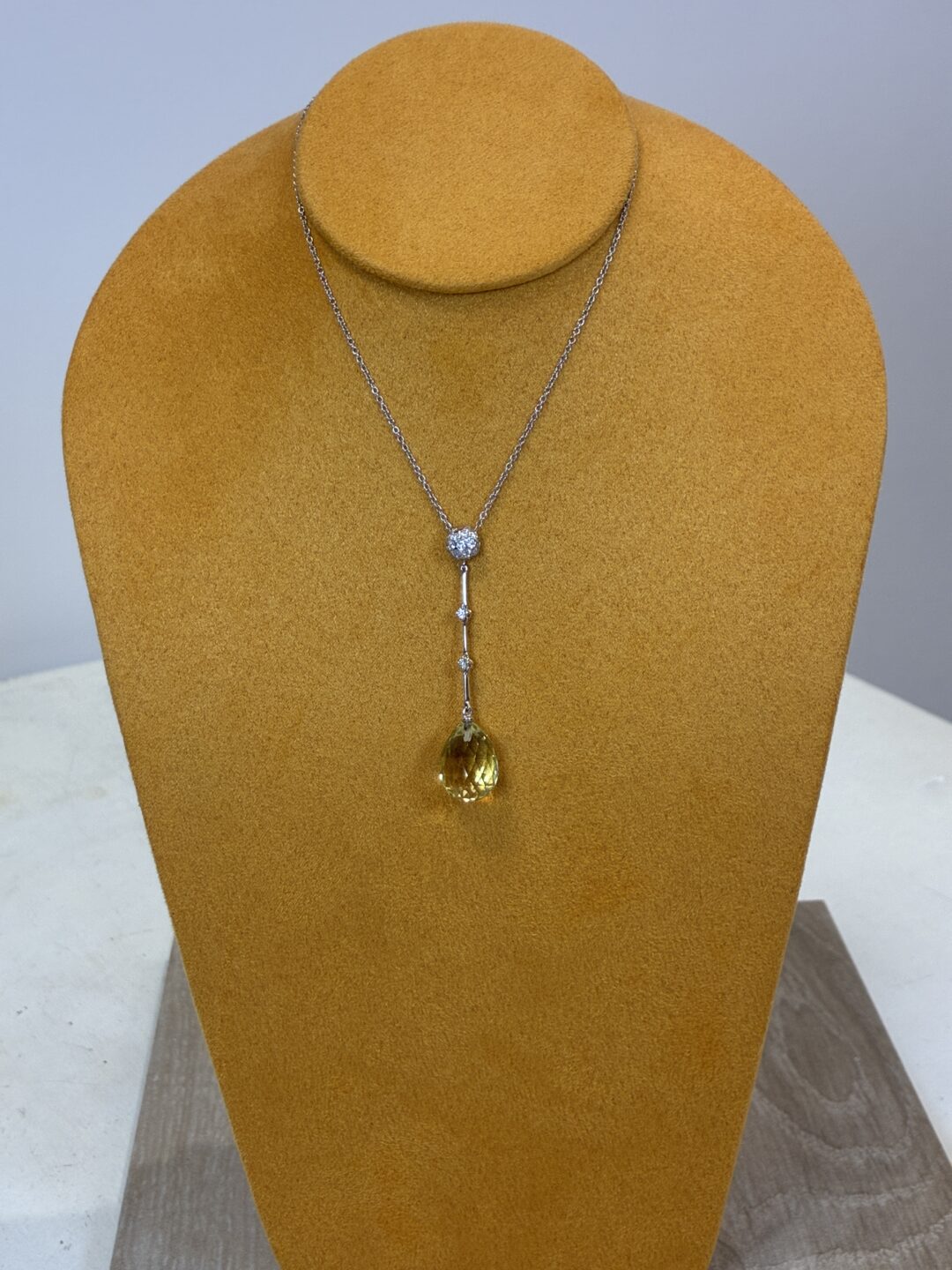 Collier or blanc 750mm quartz lemon sur diamant naturel FsI1